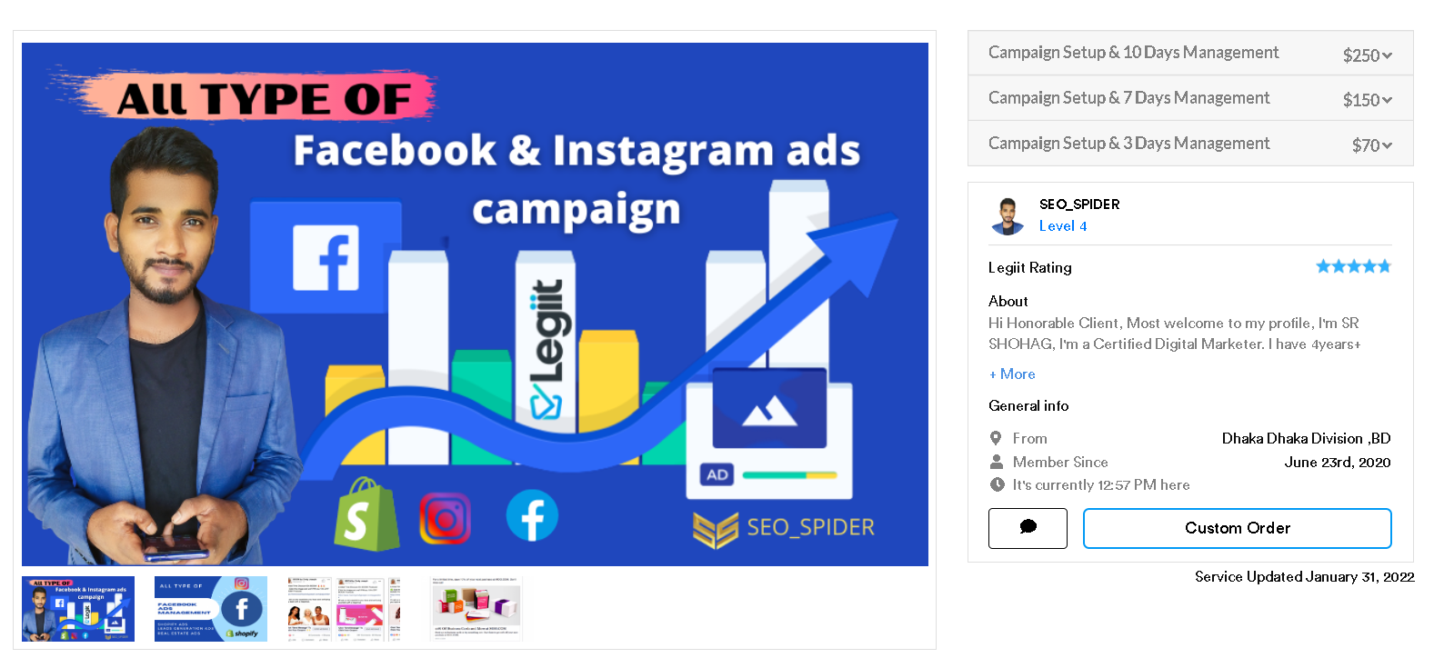 The focus on visual marketing makes this platform a stepping stone for any young business. However, you need to come up with constantly updated and original content to keep your followers interested. If you don't have the time to be active on a daily basis and analyze the changing trends of your target audience, you can entrust this task to an adequate service provider on Legiit.
