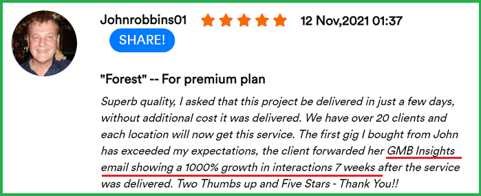 Now am I saying one service alone is going to improve your Maps/GBP ranking & your organic ranking and get your phone ringing? No of course not. You have to have the fundamentals in place and so on.