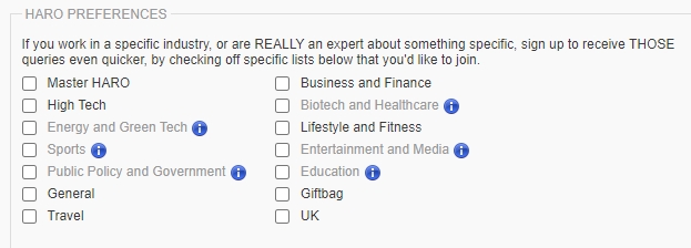 Depending on what you choose here, HARO will send queries right to your inbox.